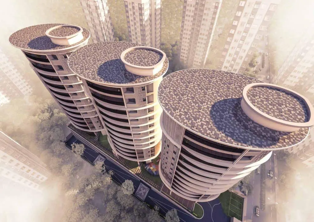 – 3 towers of 11 storeys each on 1 acre