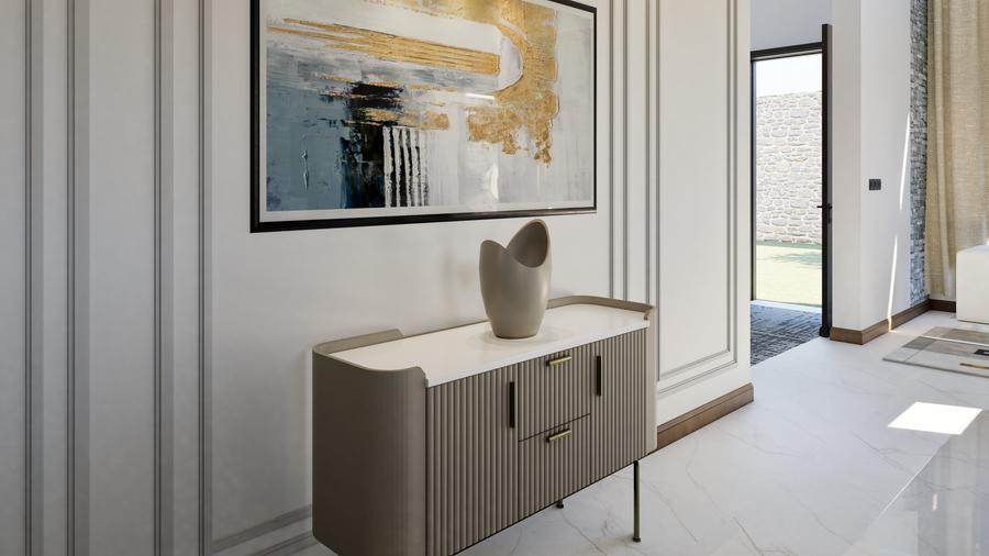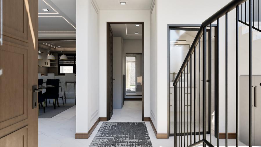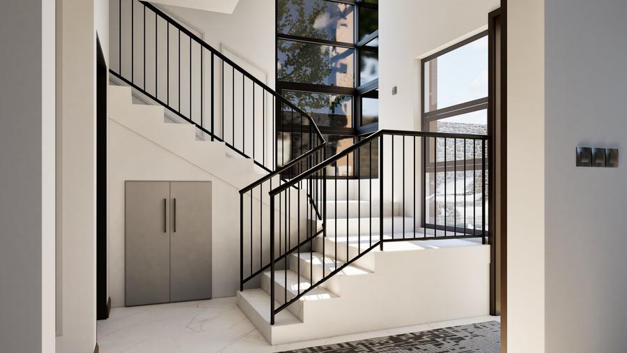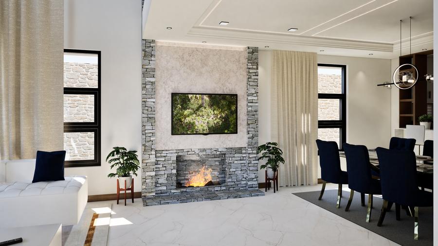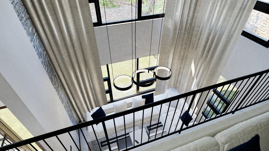 The maisonettes all feature a mono-pitched roof that beautifully complements its modern design while blending with the natural surroundings. The ground floor includes an entrance lobby, a spacious lounge with a fireplace and double-volume ceiling, a dining area, a kitchen with a pantry, a dhobi, a visitor’s cloakroom, and an ensuite guest bedroom.
