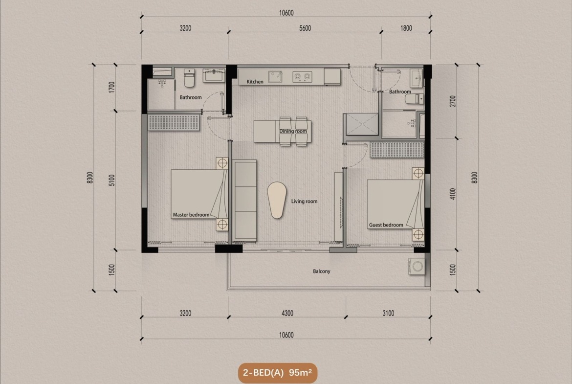 ✅ 2 Bedroom (95 Sq.m)
