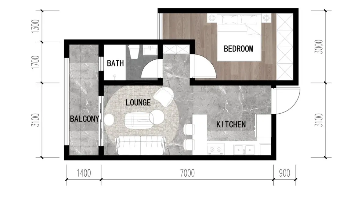 • Property Size: 58 m²