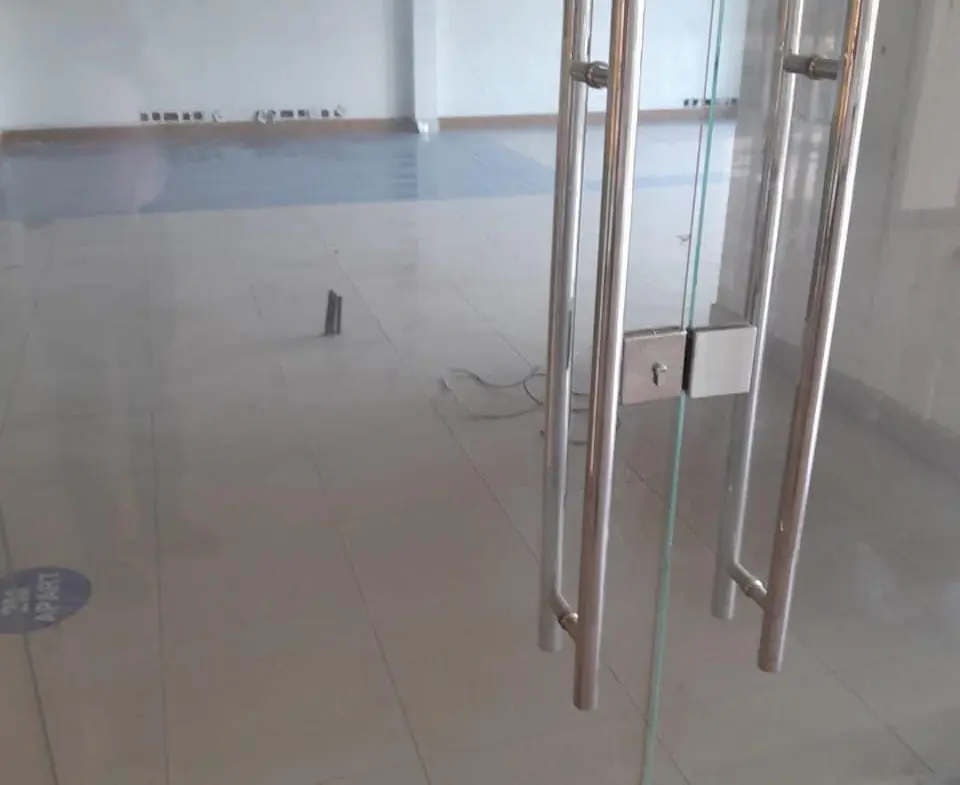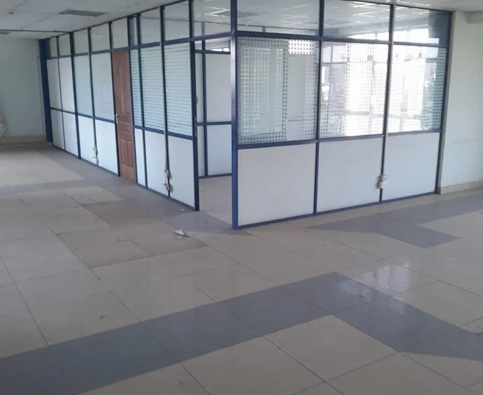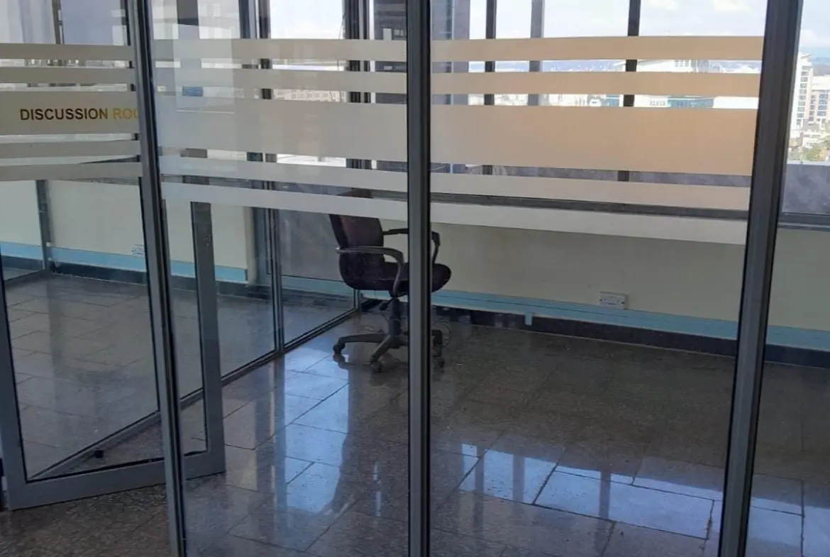 This is a modern commercial office building located along Upper Hill Road, Upper Hill in Nairobi City County. The office is fully partitioned by glass: